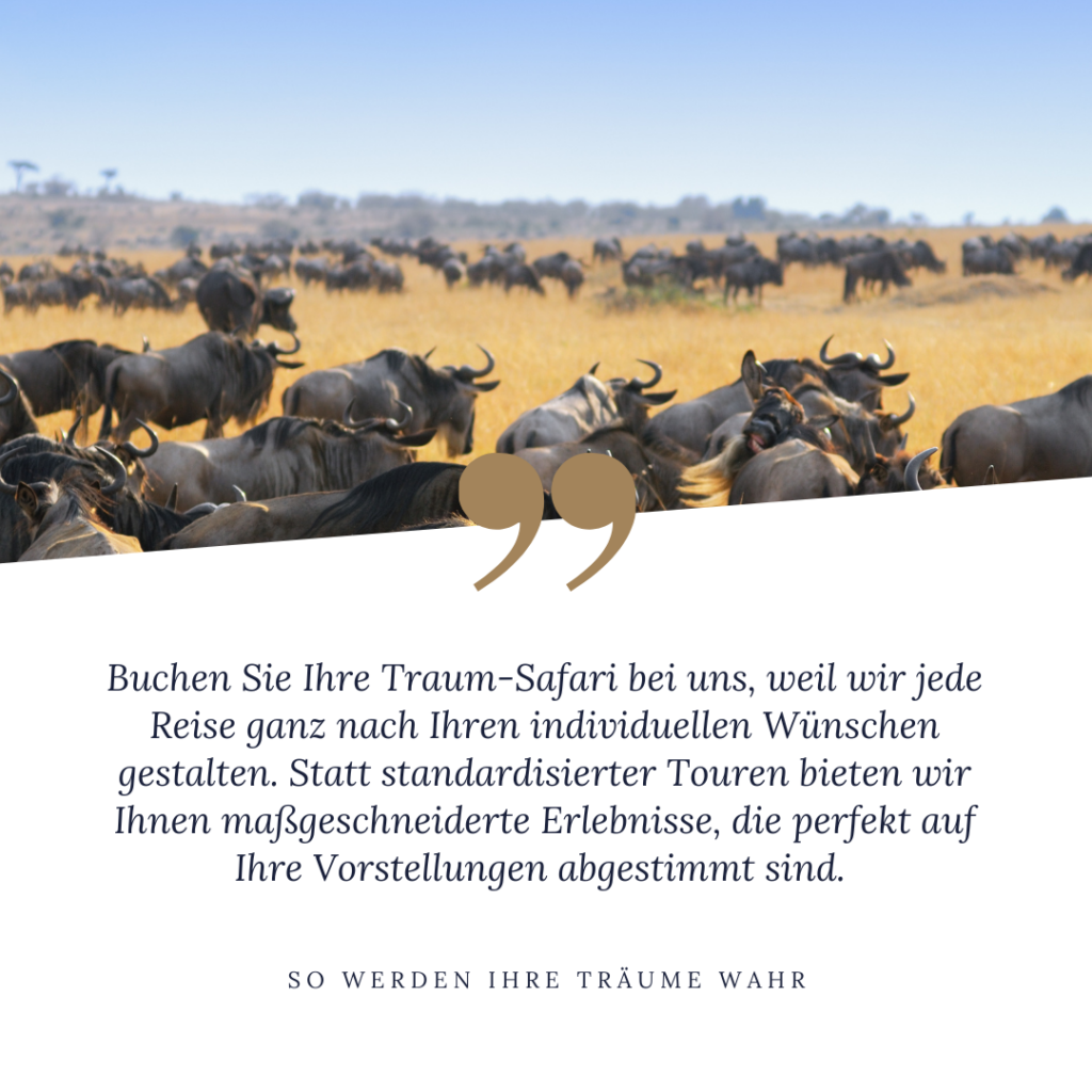 Von den endlosen Ebenen der Maasai Mara bis zu den beeindruckenden Landschaften des Amboseli-Nationalparks bietet Kenia eine reiche Palette an Tierwelt und Kulturen. Lassen Sie sich von unseren Experten unterstützen, um Ihre Safari individuell zu gestalten – von der Auswahl erstklassiger Unterkünfte bis hin zu unvergesslichen Tierbeobachtungserlebnissen. Erleben Sie die Große Migration, begegnen Sie den faszinierenden Maasai-Kriegern und entdecken Sie die einzigartige Schönheit Kenias in all ihren Facetten.