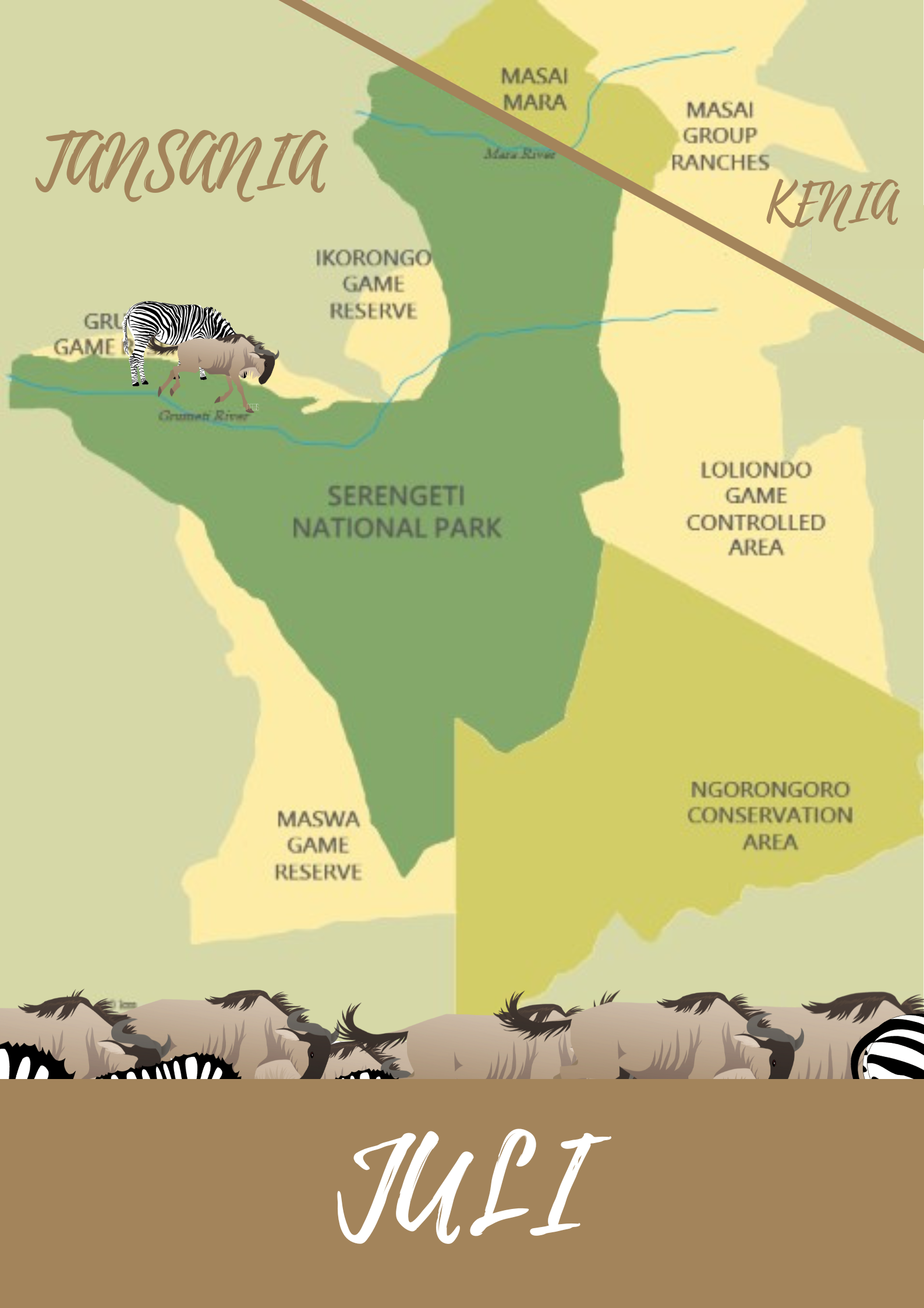 Verlauf der Tierwanderung in der Serengeti: Karte